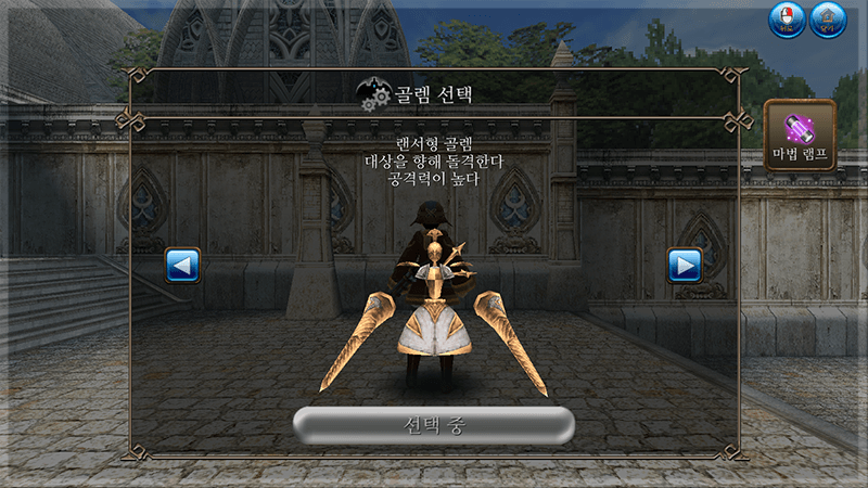 | 실드형 골렘 | 골렘술사 근처에서 행동하며 사정 거리 안이라면 공격한다 |
