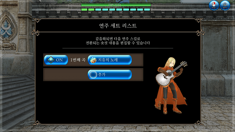 감음 버프로 변화한 노래 스킬은 연주자가 전투 불능 상태가 되지 않는 한, 효과가 영구적으로 지속됩니다.