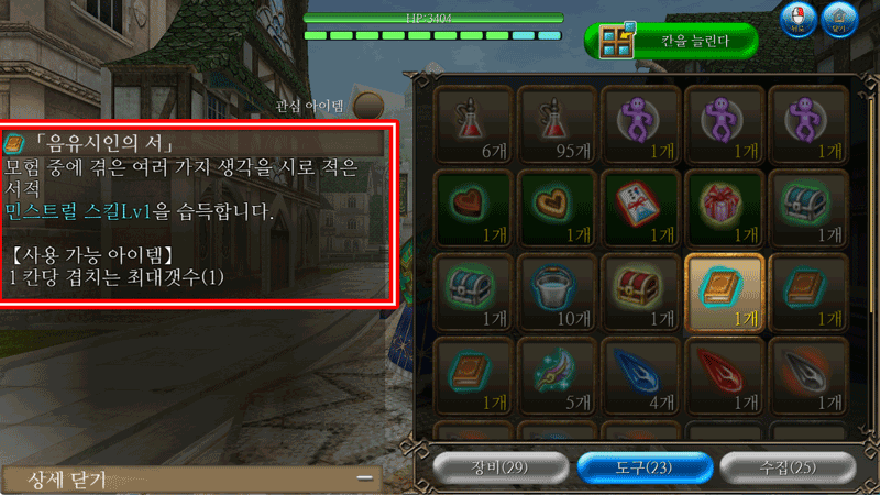 음유시인의 서]를 사용하면 Lv1 스킬 트리를 습득할 수 있습니다.