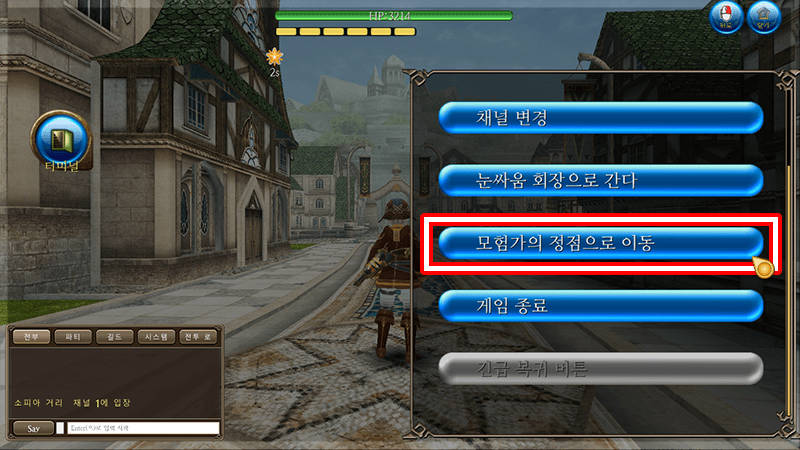 「메뉴 > 터미널 > 모험가의 정점으로 이동」 으로「모험가의 정점」 회장으로 이동할 수 있습니다.